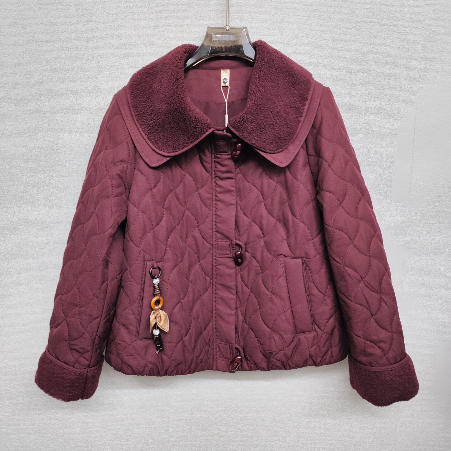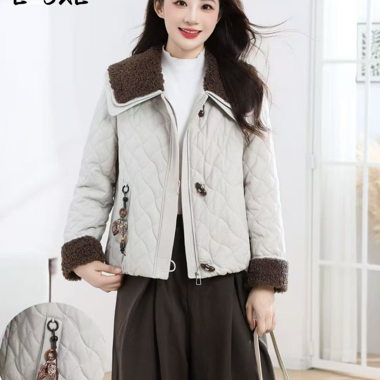 F813轻薄短款棉衣外套洋气双层翻领韩版小个女士棉服特色纽扣挂件