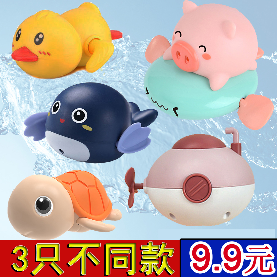 抖音同款发条戏水小乌龟宝宝洗澡神器小黄鸭男孩女孩喷水浴室玩具