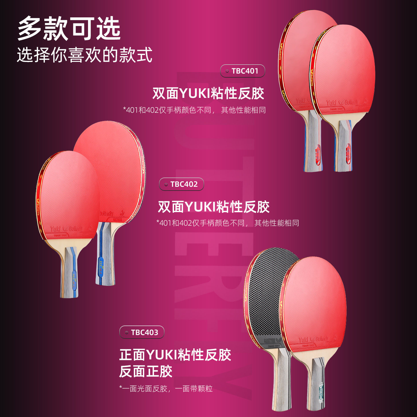 BUTTERFLY蝴蝶乒乓球拍3星四星兵乓球拍学生初学者正胶颗粒直横拍