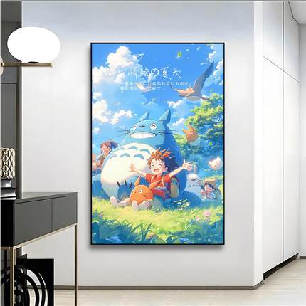 宫崎骏日式动漫装饰画千与千寻挂画玄关卧室儿童房龙猫风景墙壁画