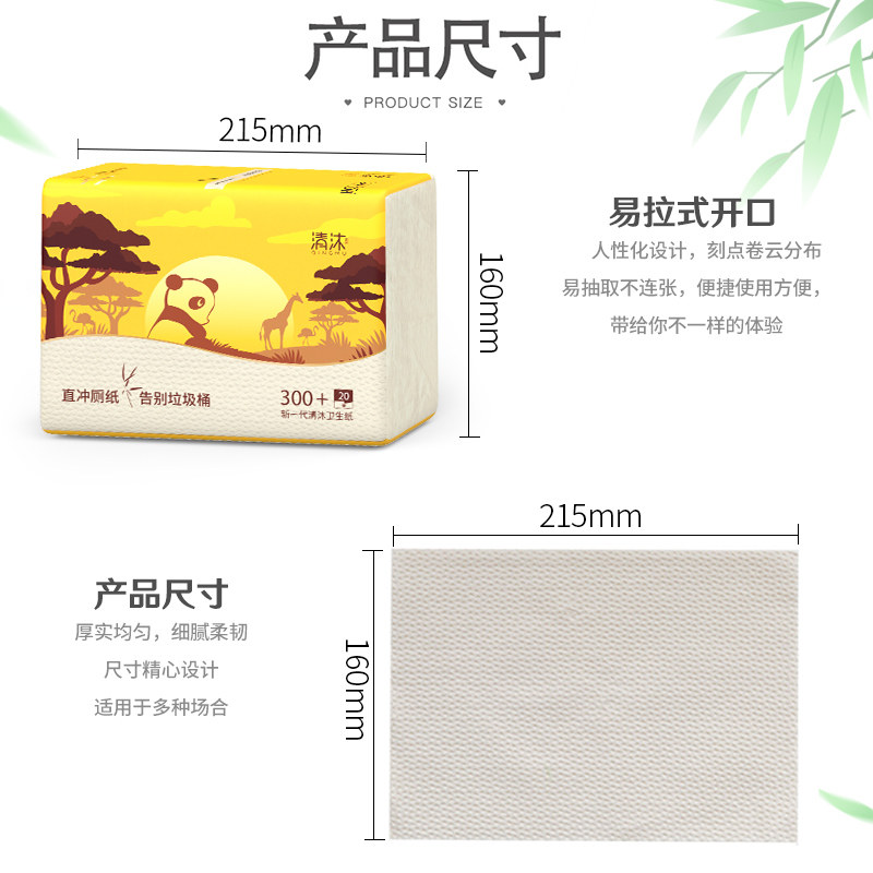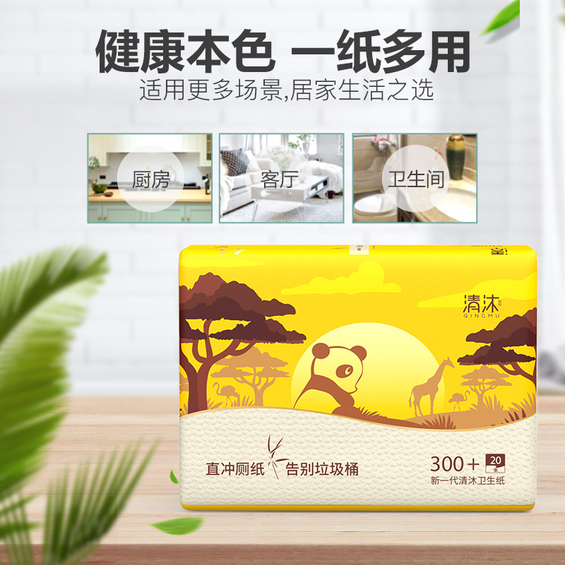 清沐家用压花实惠本色可溶卫生纸