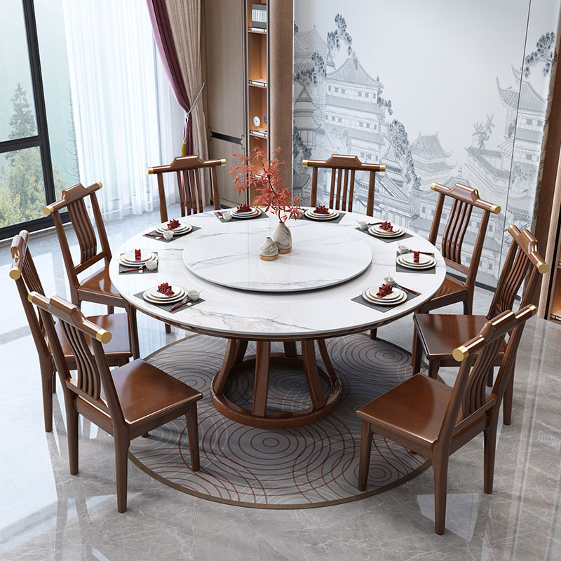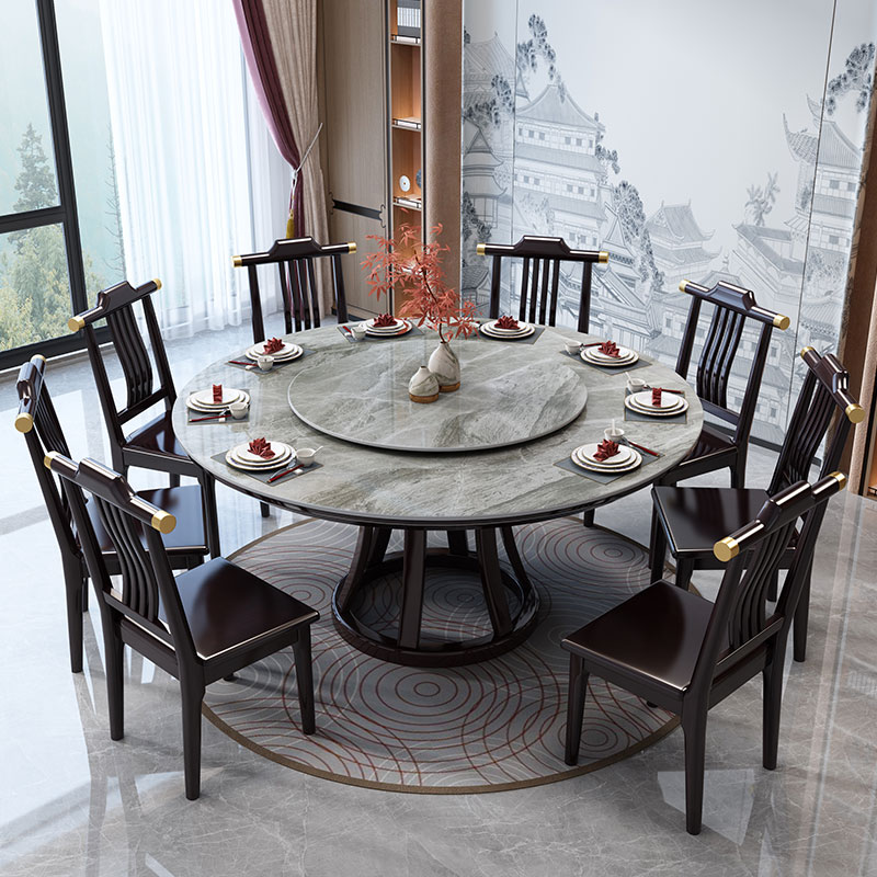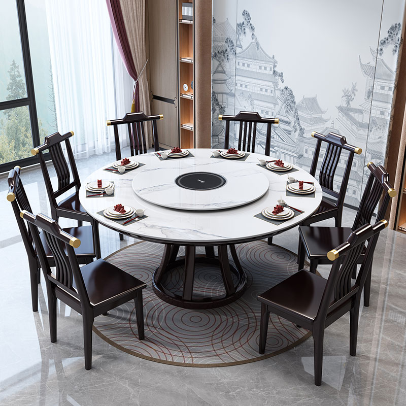 新品新中式大圆桌带岩板转盘家用1.8米圆形酒饭店12人实木餐桌椅