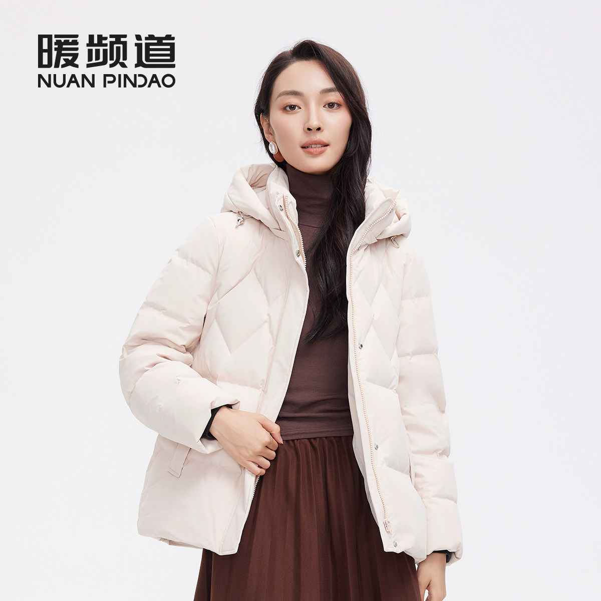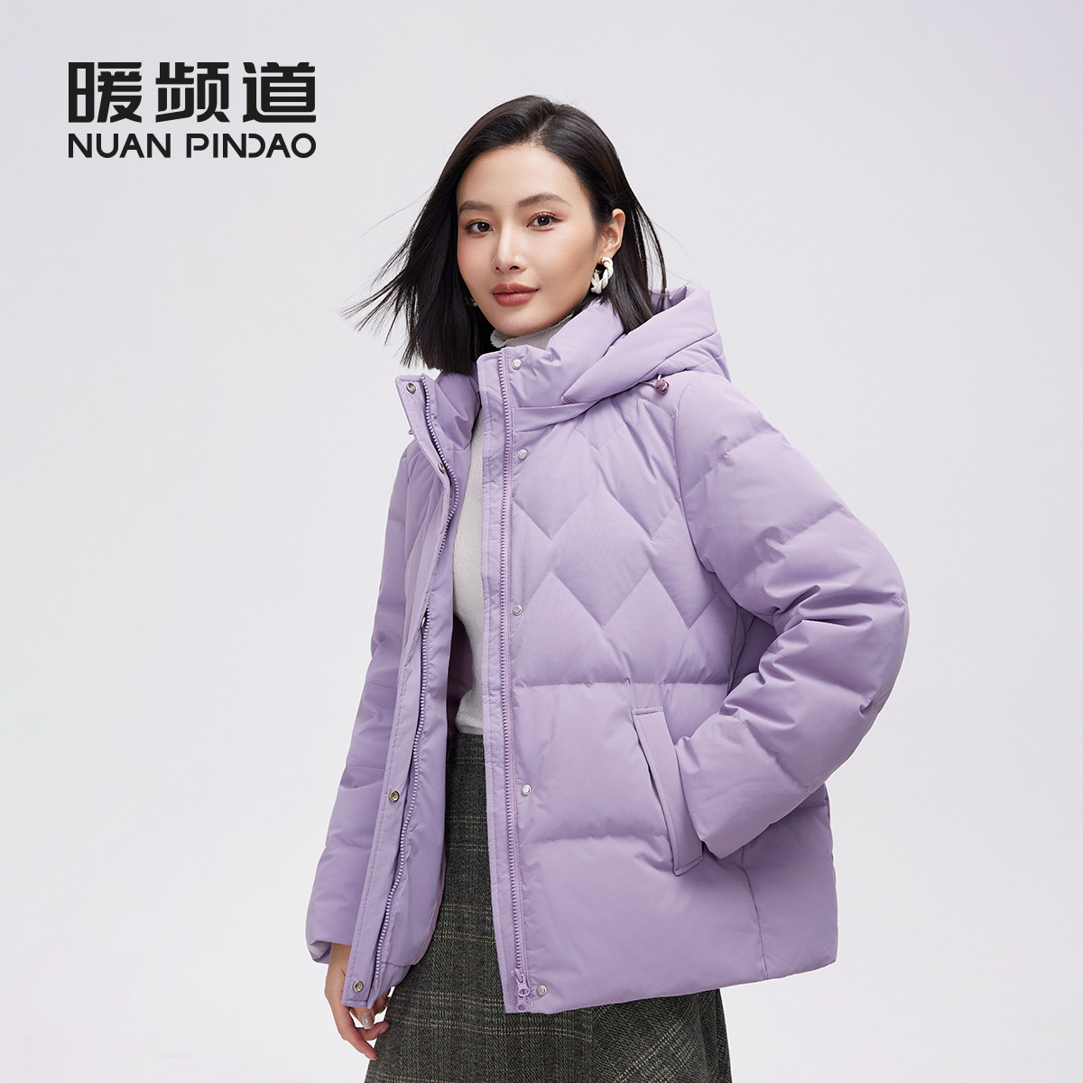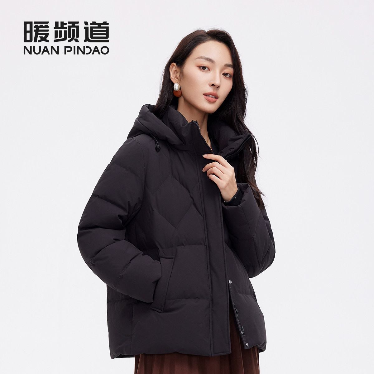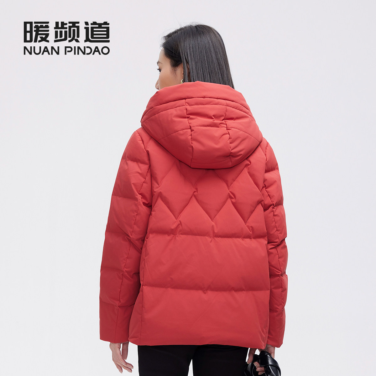 暖频道女士连帽短款加厚羽绒服妈妈款鸭绒冬季保暖休闲外套面包服