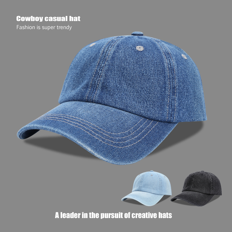 牛仔棒球帽子女复古百搭显脸小日系纯色户外运动休闲遮阳鸭舌帽男