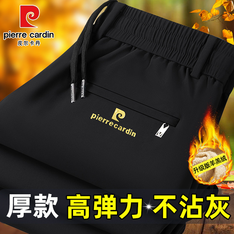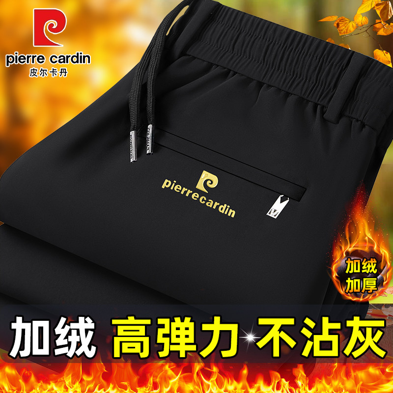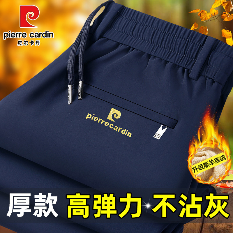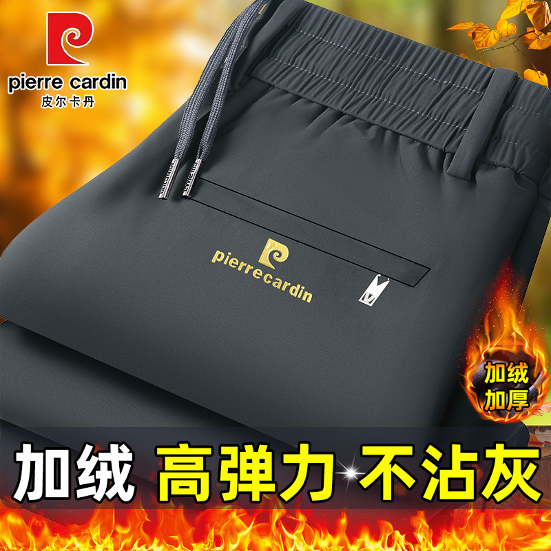 皮尔卡丹男裤加绒加厚松紧裤休闲裤保暖中年直筒免烫宽松厚款裤子