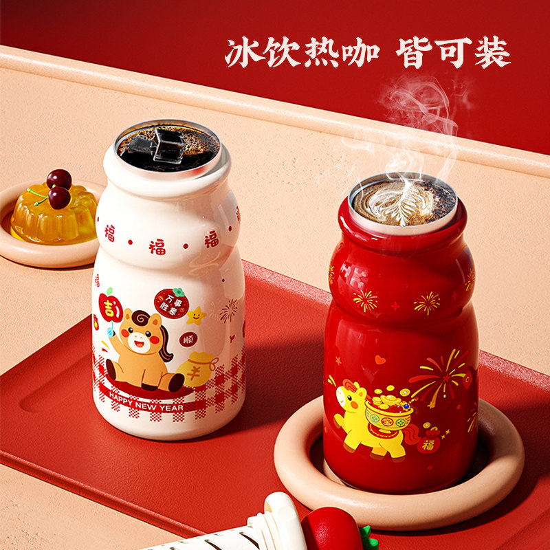 奇古堂吸管保温杯女生新款2025高颜值水杯小巧便携马年杯子陶瓷X