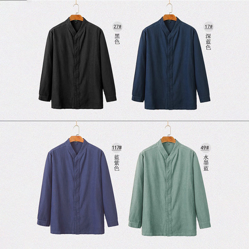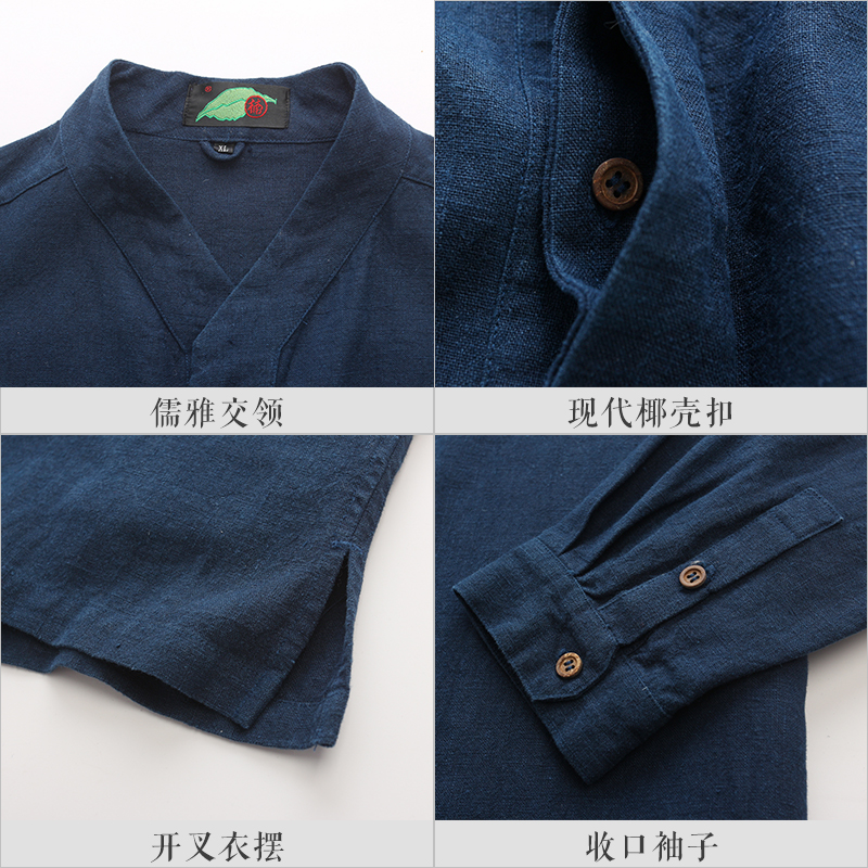 楠中国风男士衬衫100%苎麻长袖