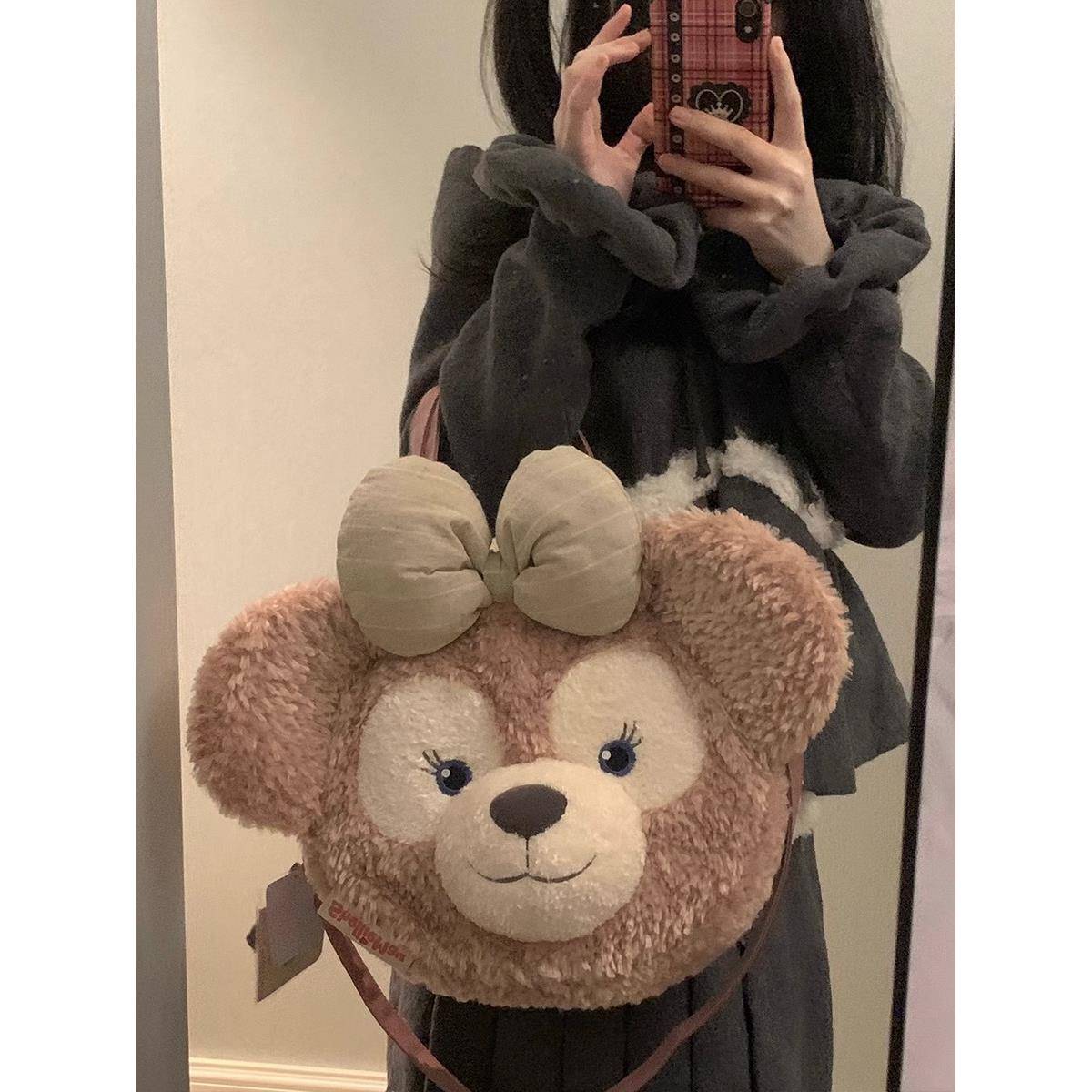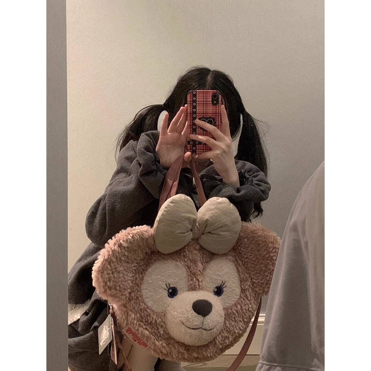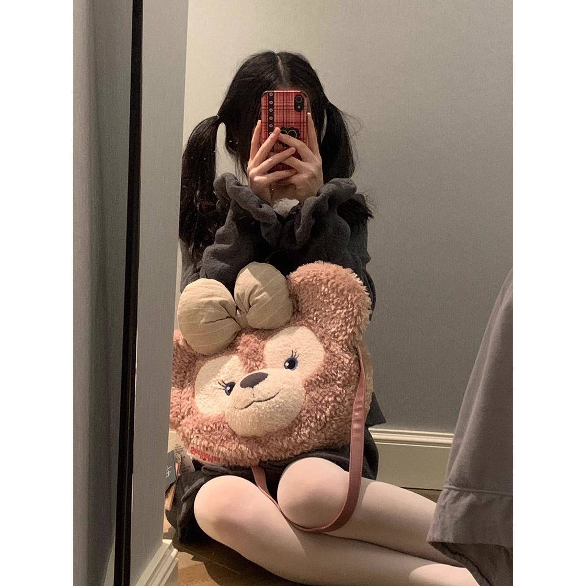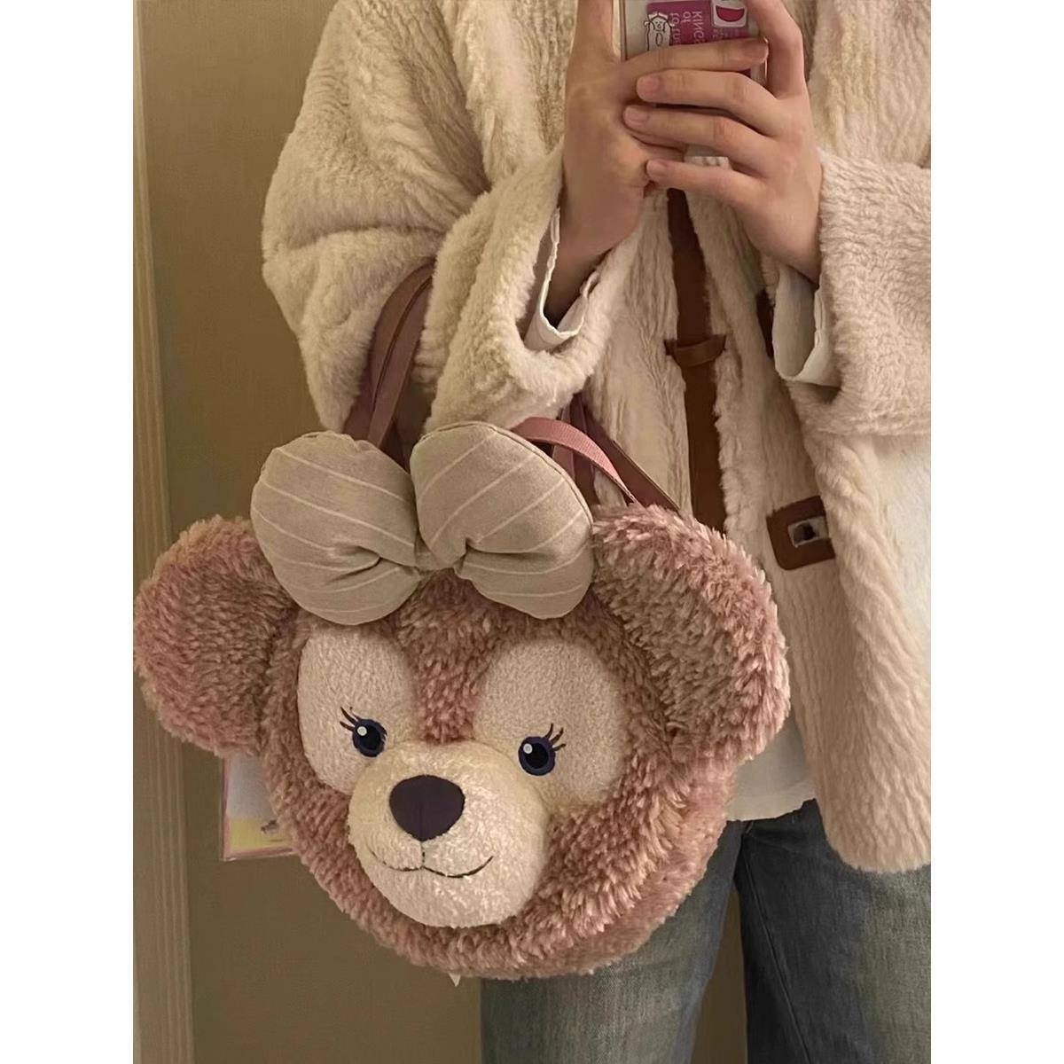 迪士尼可爱雪莉玫大脸毛绒包包女2024新款春夏达菲熊毛毛双肩背包