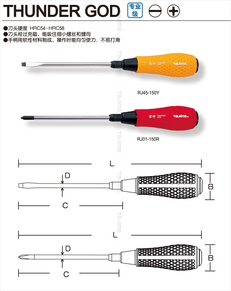 日本tajima田岛螺丝刀套装工具十字螺丝批带磁雷神系列十字改锥