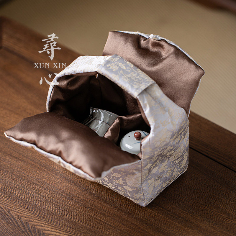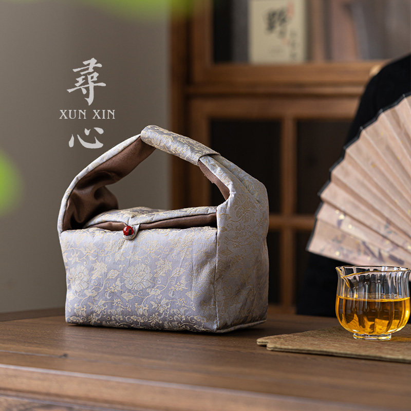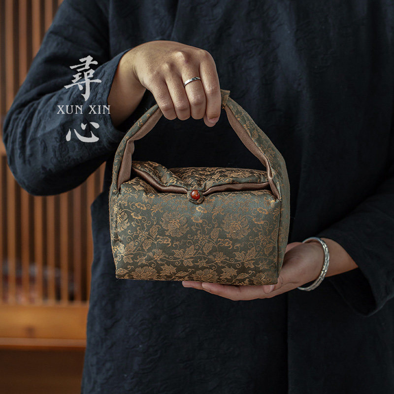 寻心缠枝莲织锦茶事手提包旅行便携茶具收纳包中式加厚带隔层布袋
