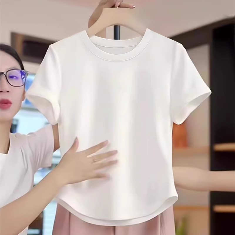 童装纯棉儿童t恤短袖夏季中大女童短款上衣下摆弧形正肩白色体恤