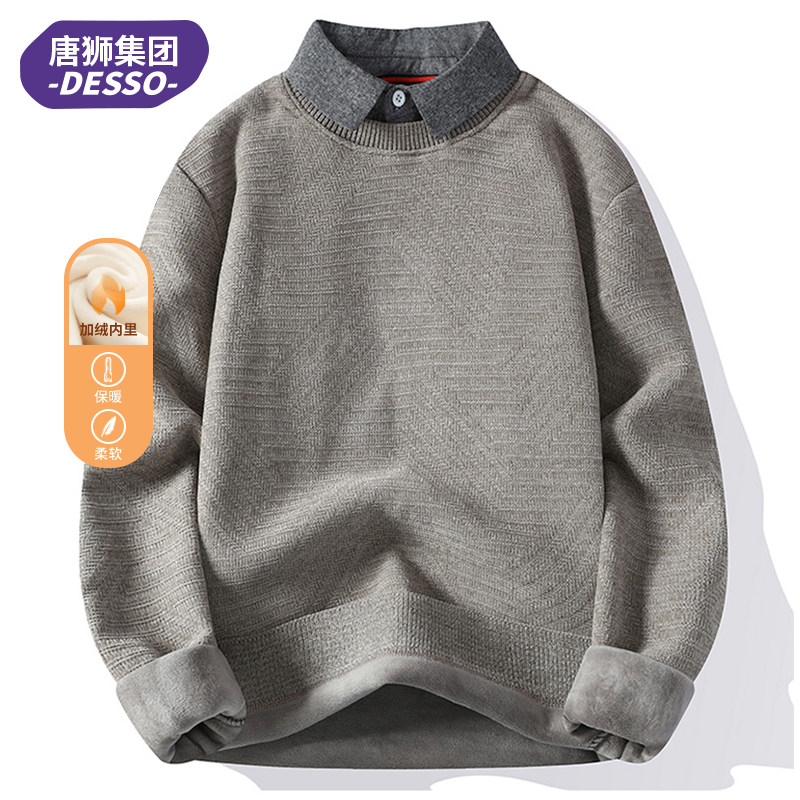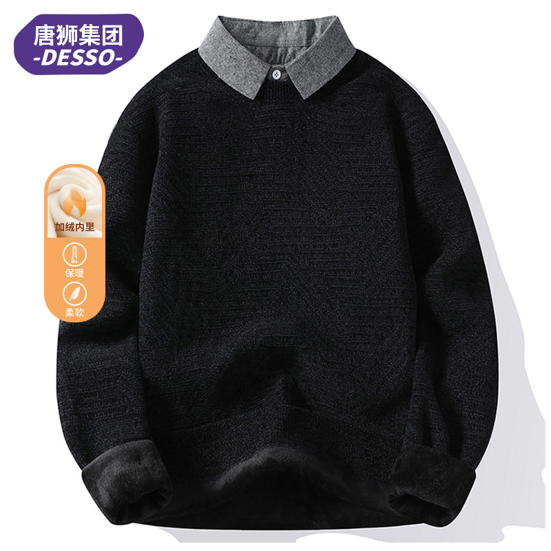 唐狮集团DESSO男士休闲假两件加绒加厚25衬衫领针织毛衣保暖内搭