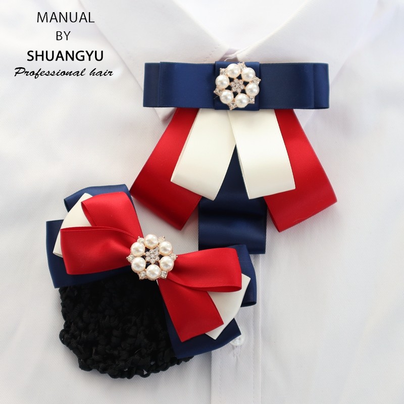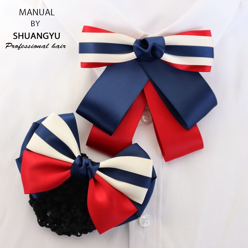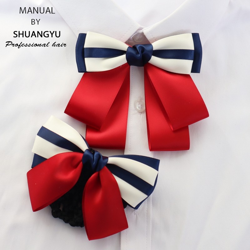 女士领结职业银行空姐职业装工装衬衫丝带学院风蓝色领花红白蓝