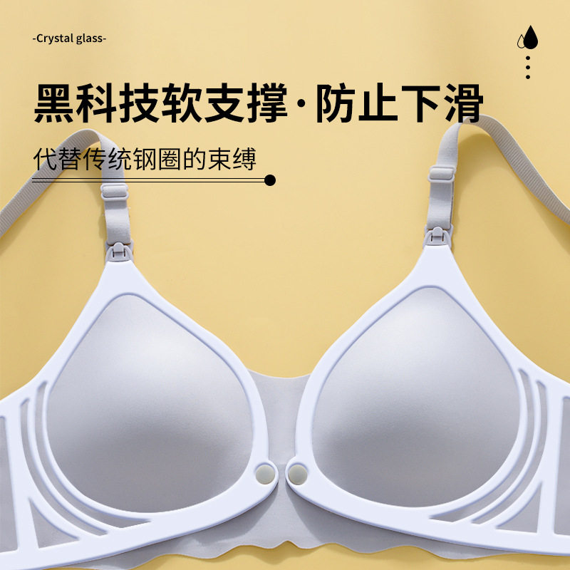 哺乳内衣夏季薄款一片式无痕产后喂奶前开扣防下垂聚拢孕妇文胸