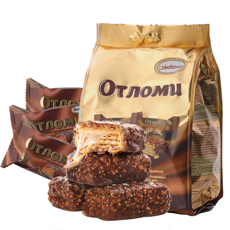 俄罗斯奥特威化巧克力拉丝饼干进口花生焦糖夹心阿孔特休闲零食品