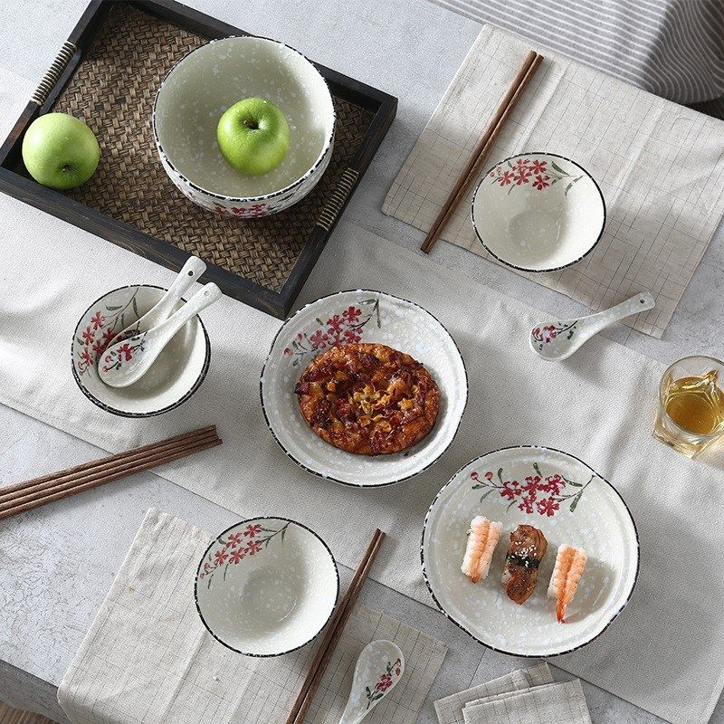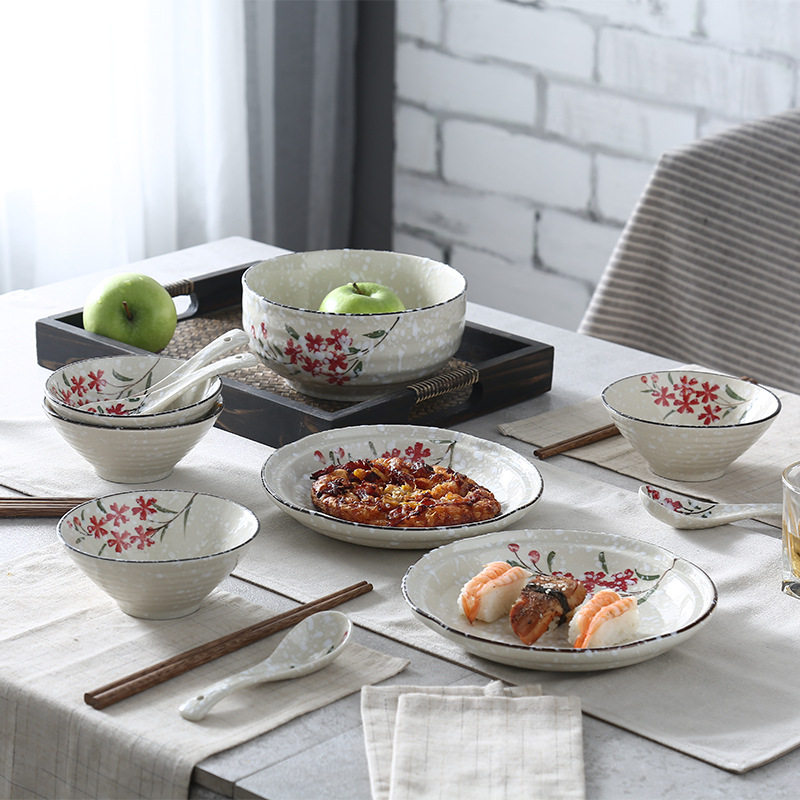 创意日式手绘g釉下彩瓷器家用陶瓷餐具碗盘碟套装餐具送新品