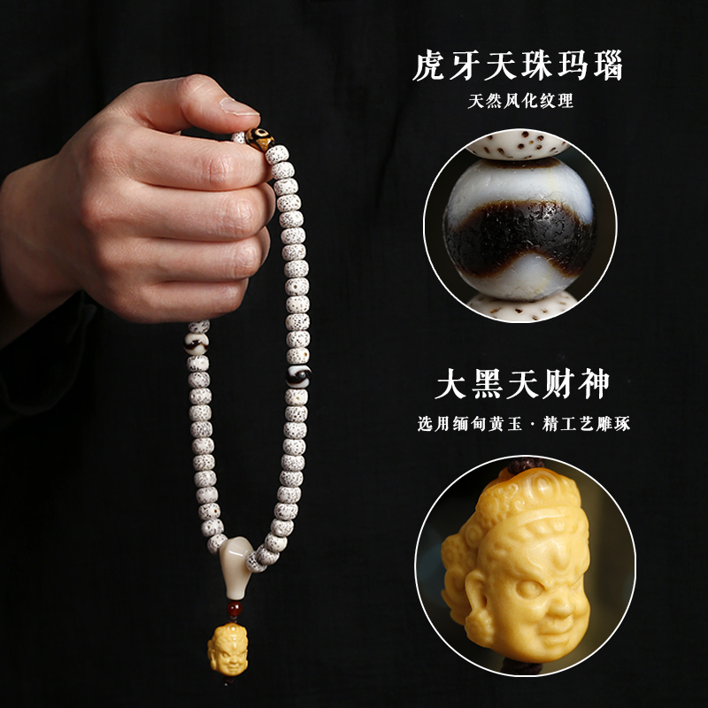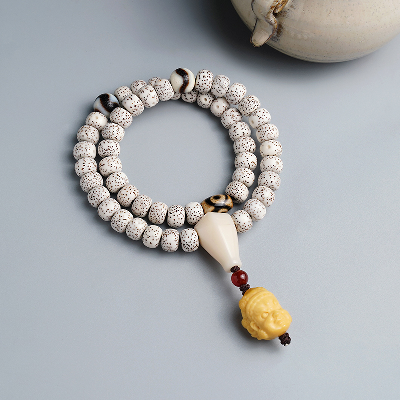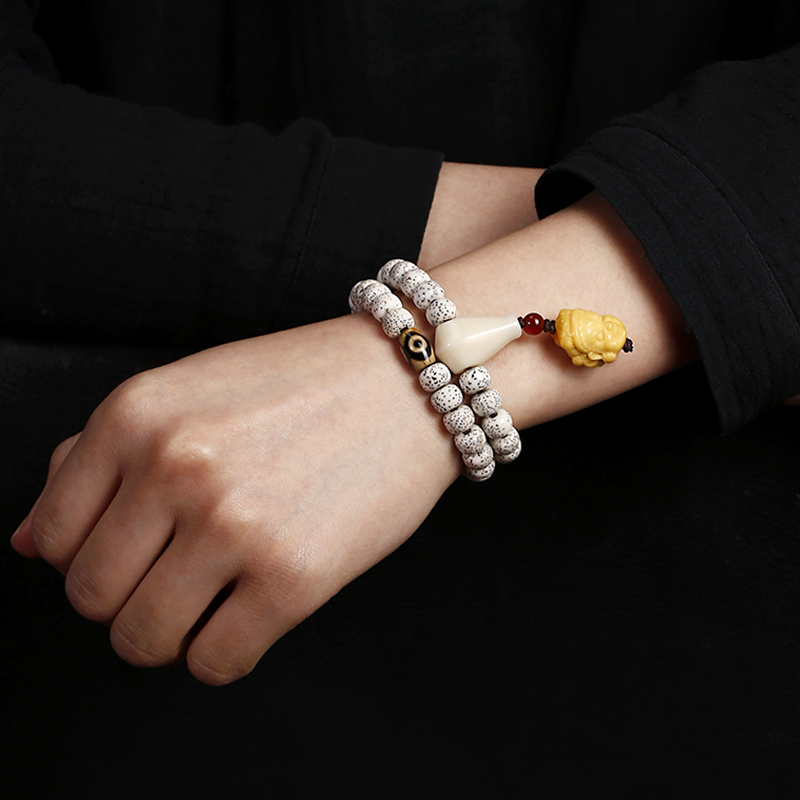 海南原生态星月菩提子手串顺白佛念珠文玩天珠配饰男女双圈手链