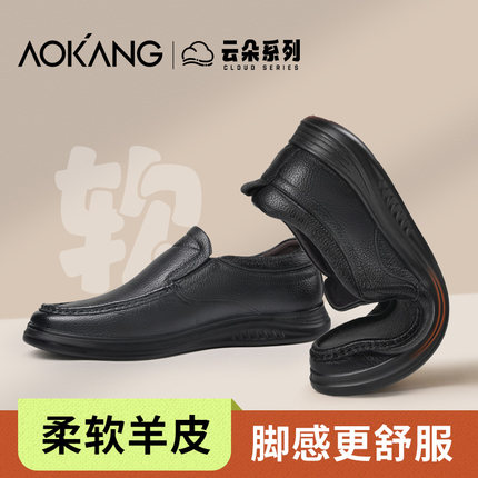 奥康男鞋春秋一脚蹬男款真皮软底羊皮男士中年爸爸鞋子休闲皮鞋男