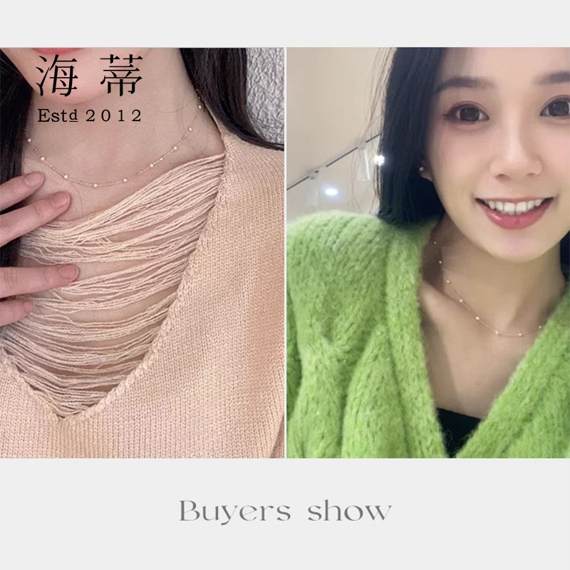 海蒂珠宝 纤星 小灯泡Akoya海水珍珠满天星锁骨项链18K金 送女友