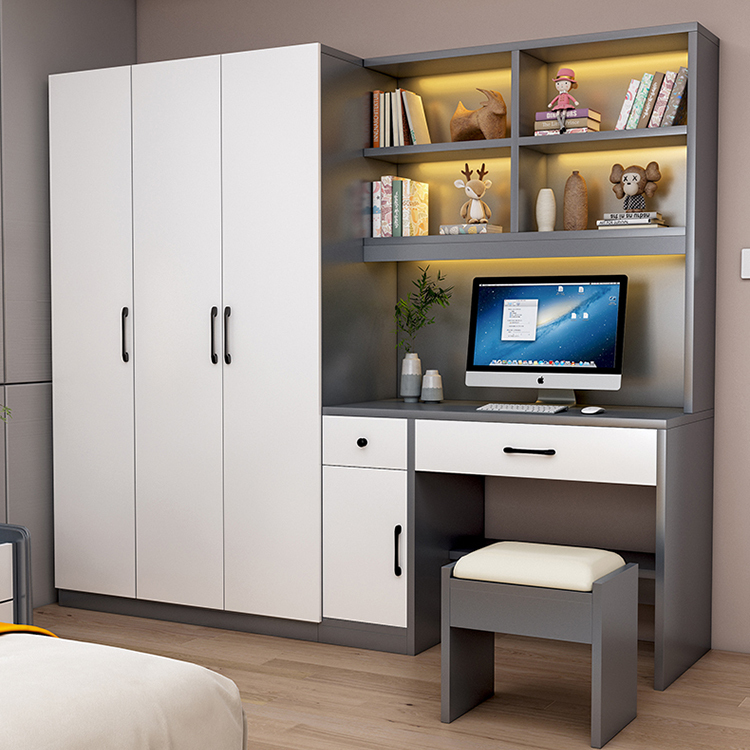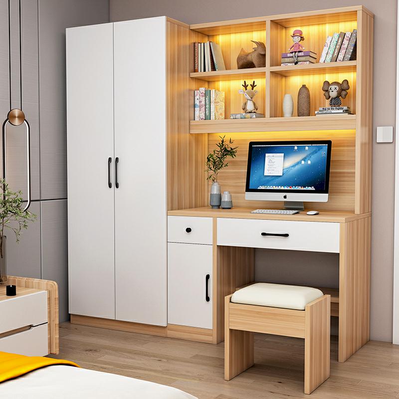 电脑桌带衣柜简约现代多功能组合书架学生写字台一体连体书桌衣柜