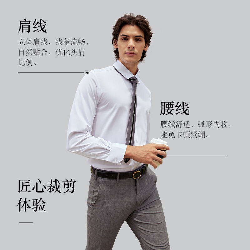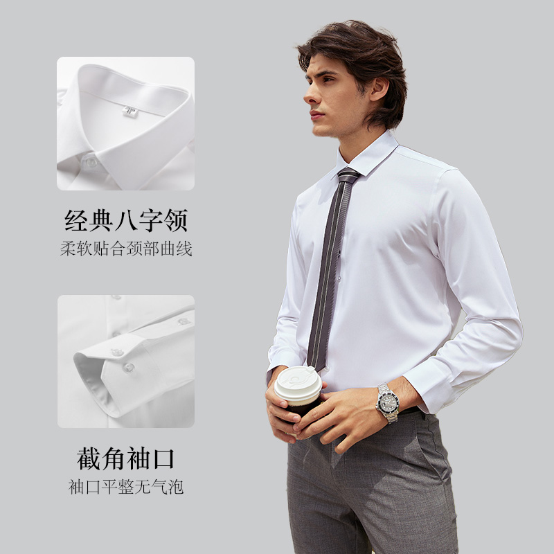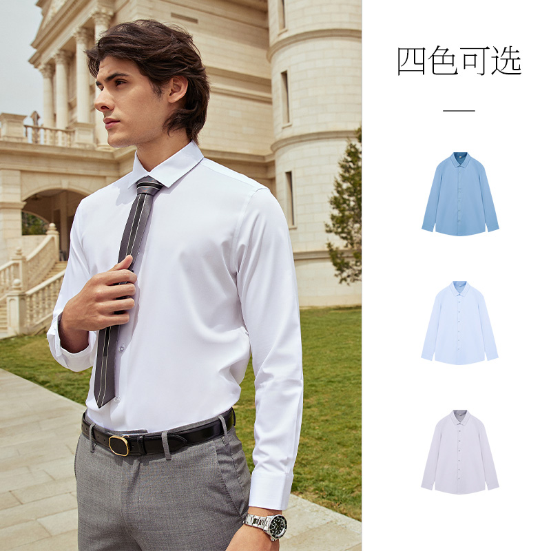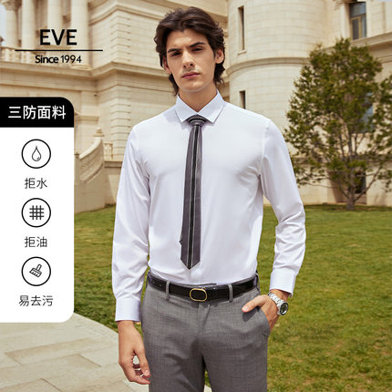 【三防面料】依文男士衬衫秋冬款商务正装纯色行政通勤长袖衬衣