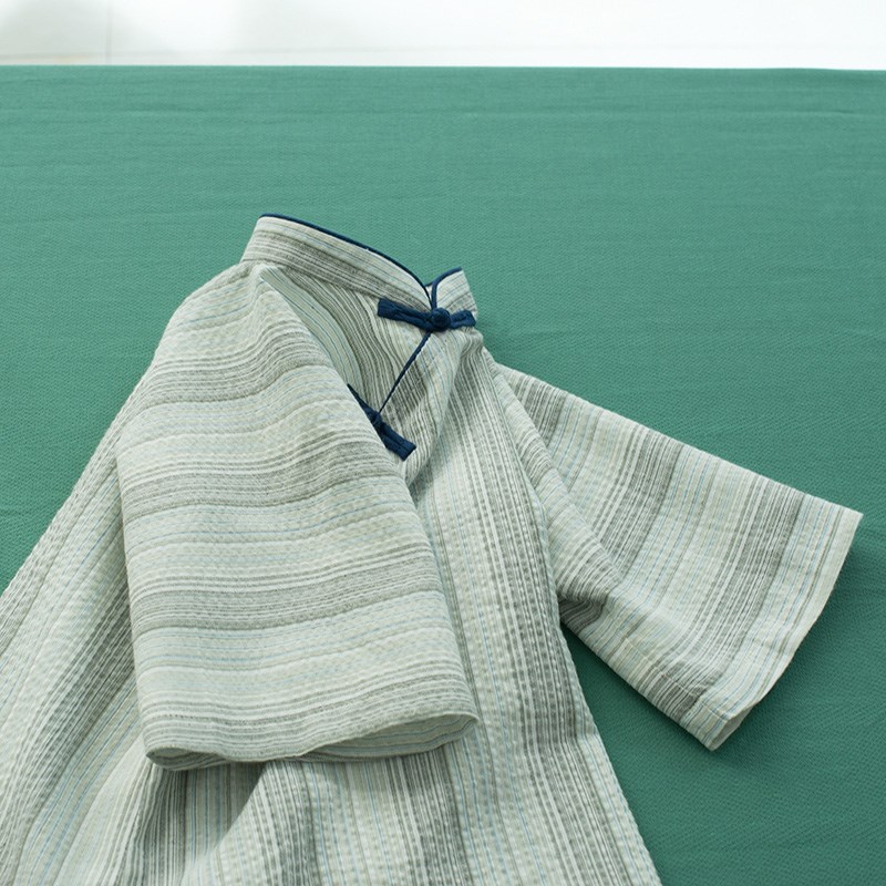 新中式女童装长袖秋季复古民国风旗袍小女孩改良倒大袖条纹连衣裙