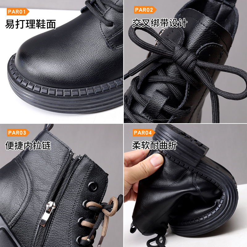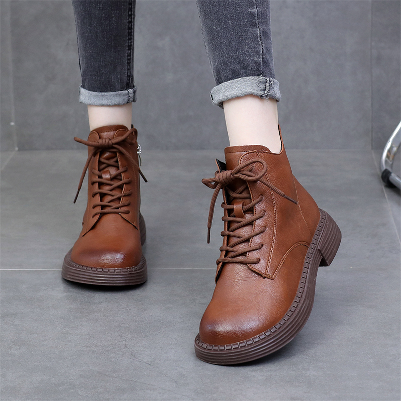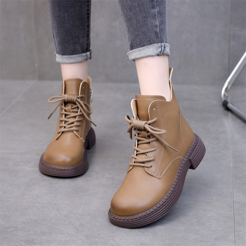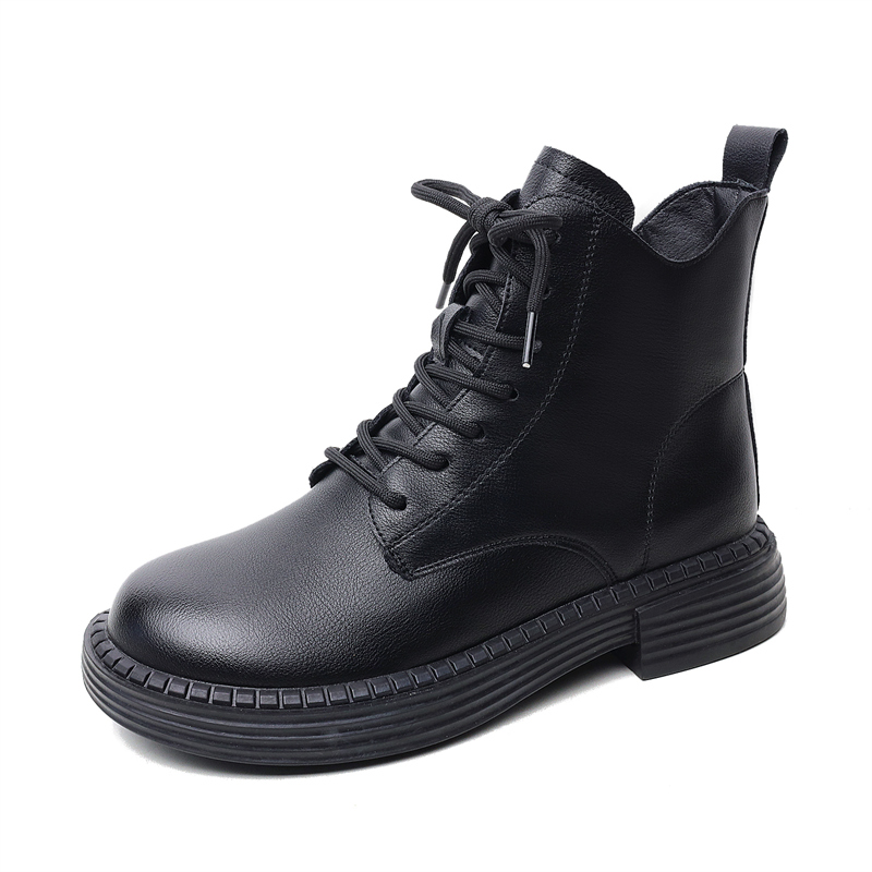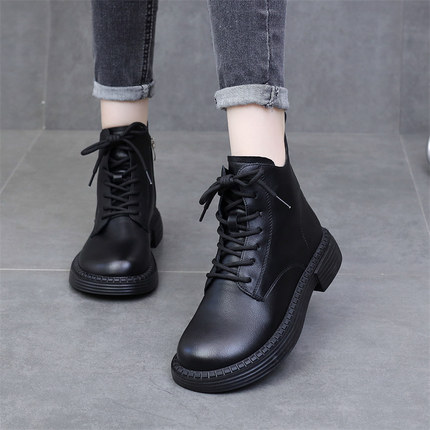 真皮短靴女2025秋冬新款英伦系带马丁靴网红爆款百搭加绒大码单靴