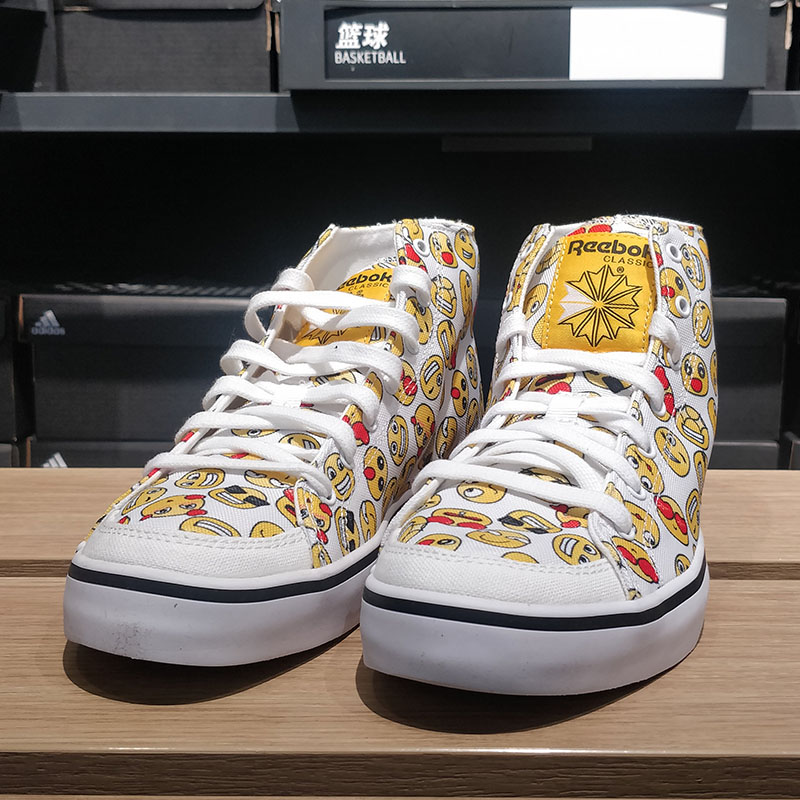 Reebok锐步男女鞋中帮表情印花防滑帆布休闲鞋板鞋G55906黑马秒杀