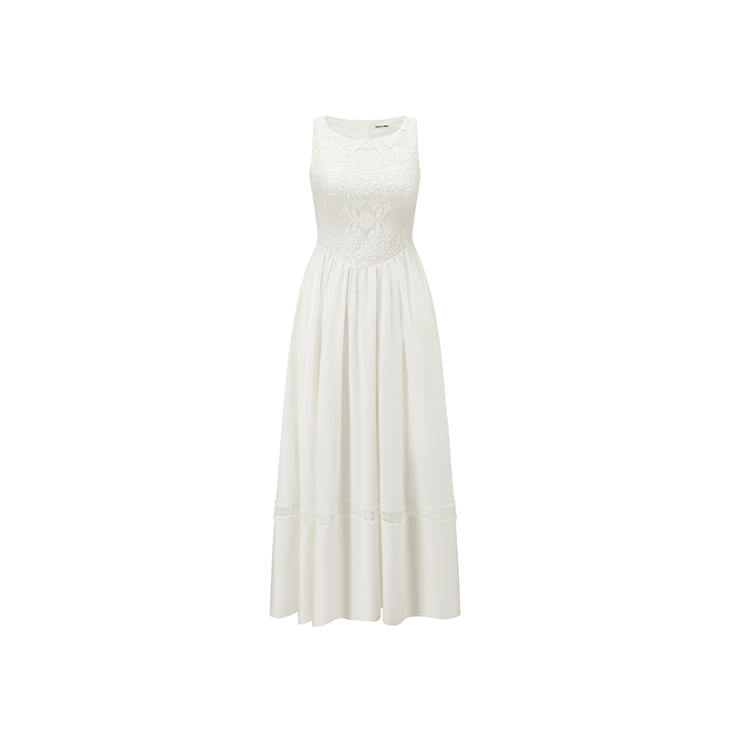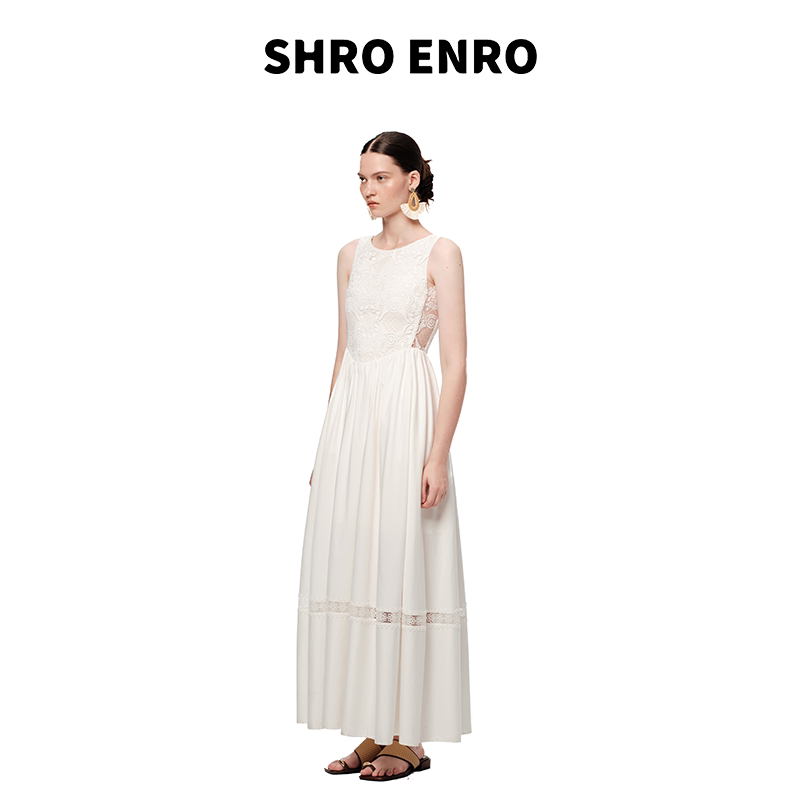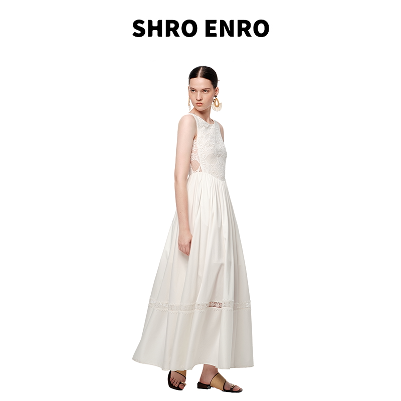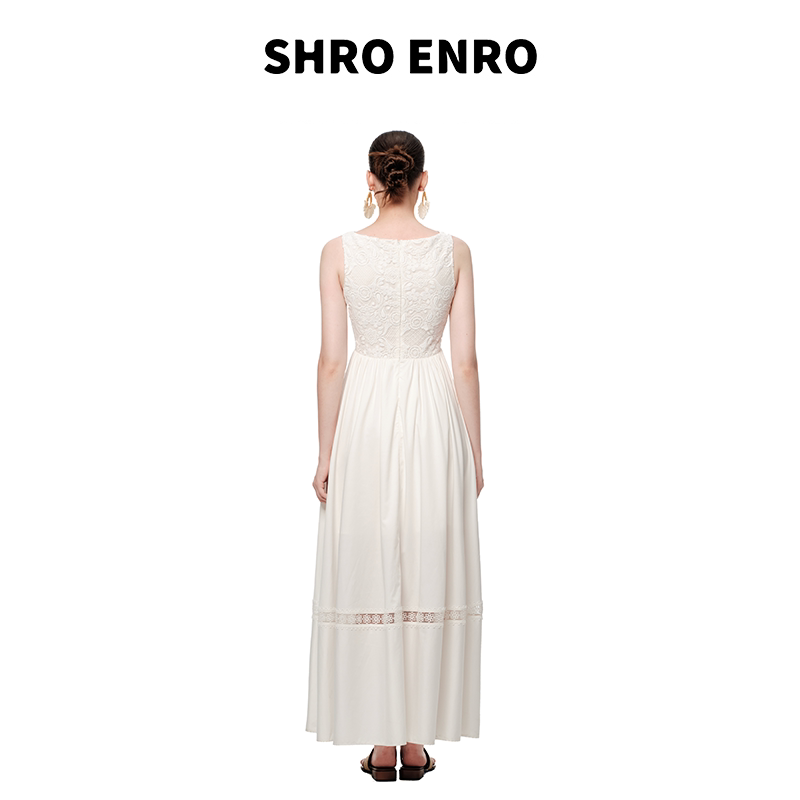SHRO ENRO春季新款高级法式蕾丝U领收腰设计感显瘦无袖连衣裙女