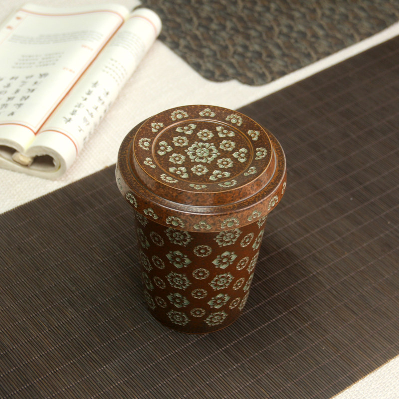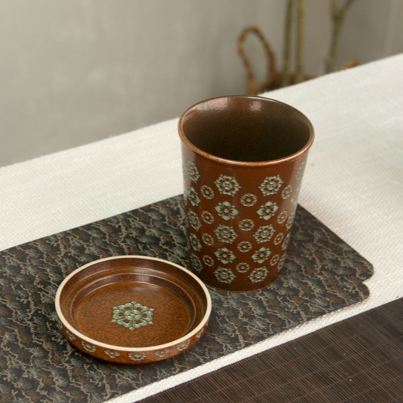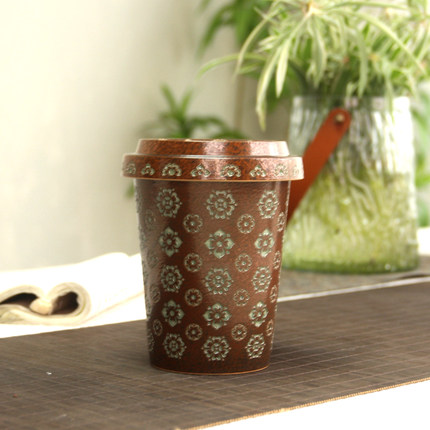 龙泉窑草木灰釉宝相花拉花咖啡杯带盖非遗手工陶瓷高颜值可乐杯子