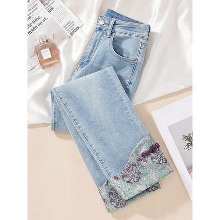 新中式烟管裤女2024新爆款夏季薄款高腰刺绣国风直筒牛仔裤小个子