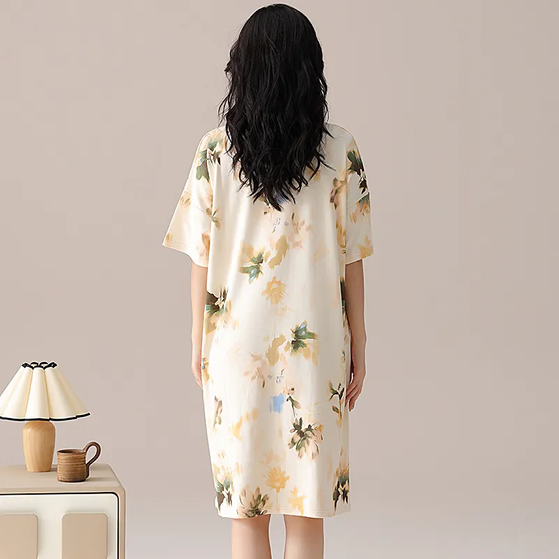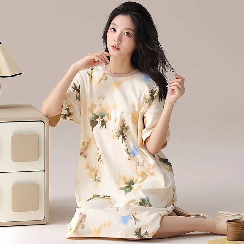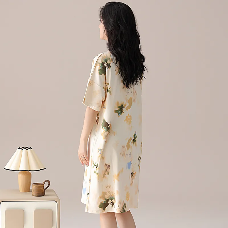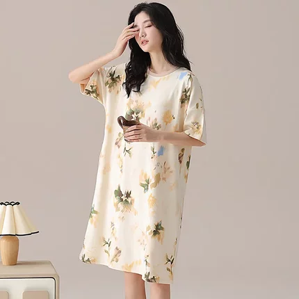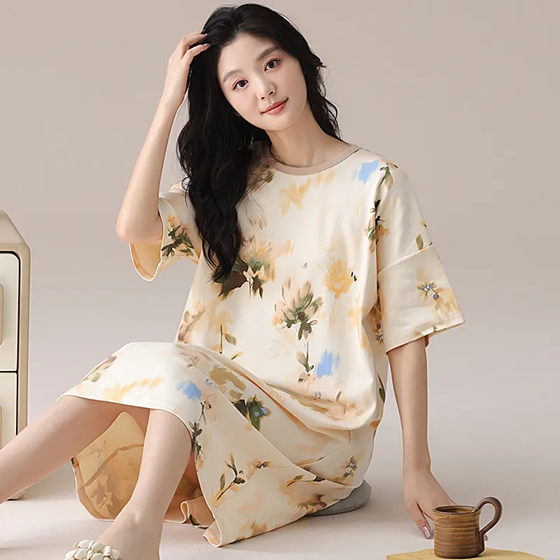 由果2025年新款睡裙女款春夏季纯棉短袖甜美休闲可外穿睡衣裙夏天