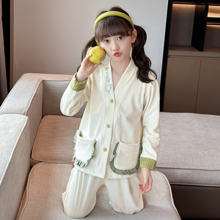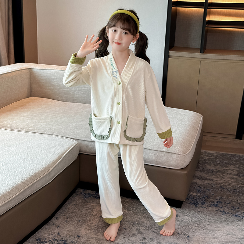 女童睡衣秋冬季海岛绒公主儿童家居服套装短绒保暖洋气开衫空调服