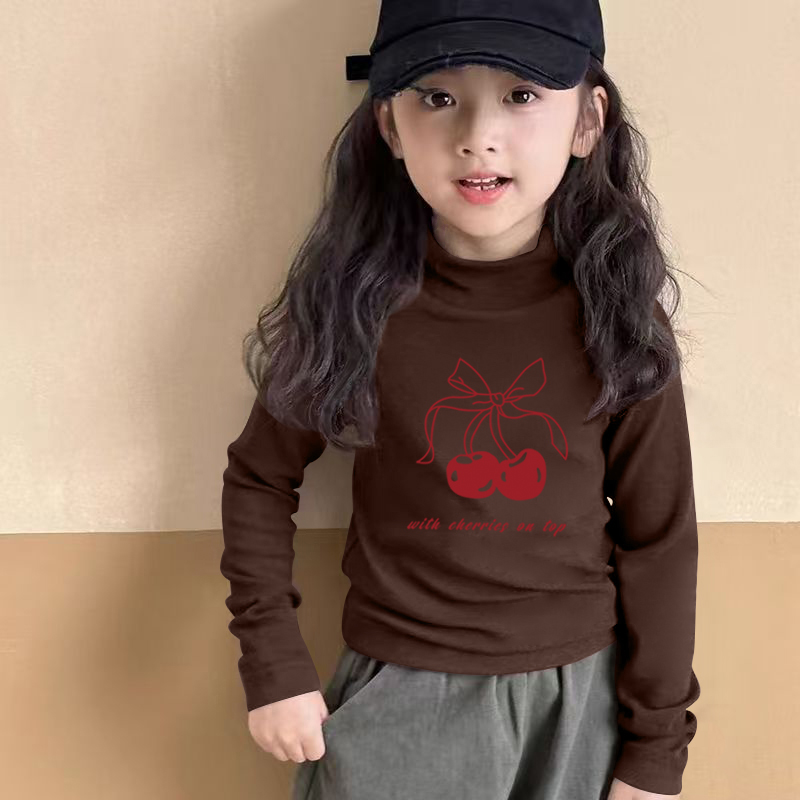 女童半高领德绒打底衫2025秋冬新款中小儿童宝宝卡通保暖印花上衣