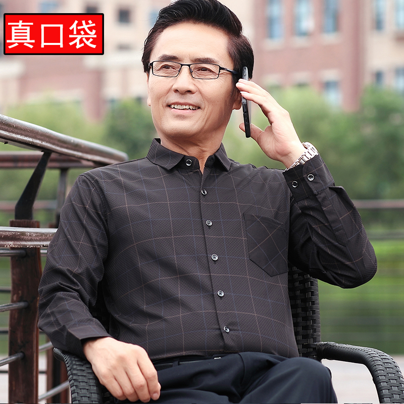 春秋爸爸装长袖衬衫薄款冰丝上衣