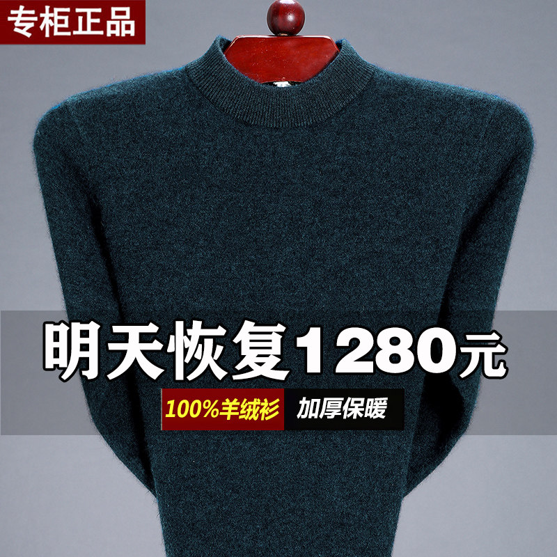 鄂尔多斯市加厚100纯羊绒衫男半高领打底针织衫羊毛衫爸爸装毛衣