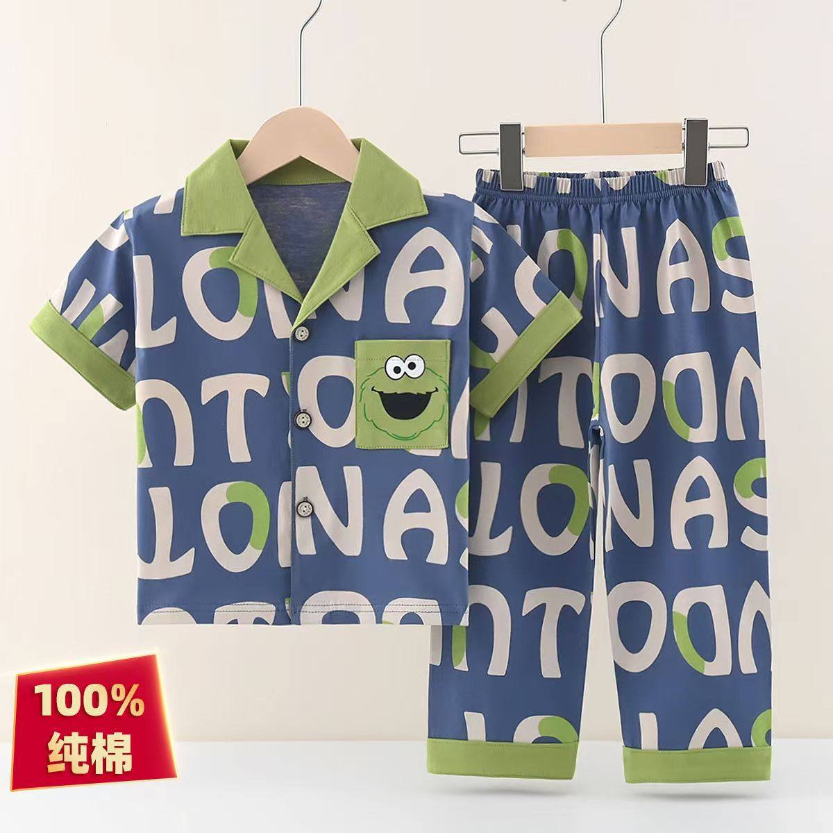 男童睡衣夏季纯棉薄款短袖中大童男孩套装2025新款儿童家居服