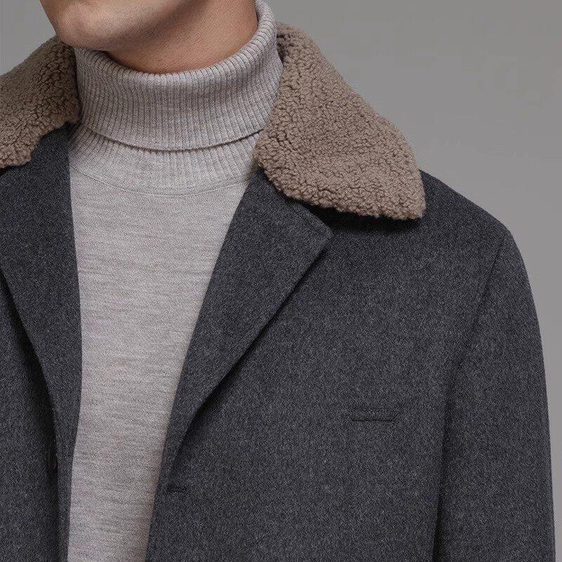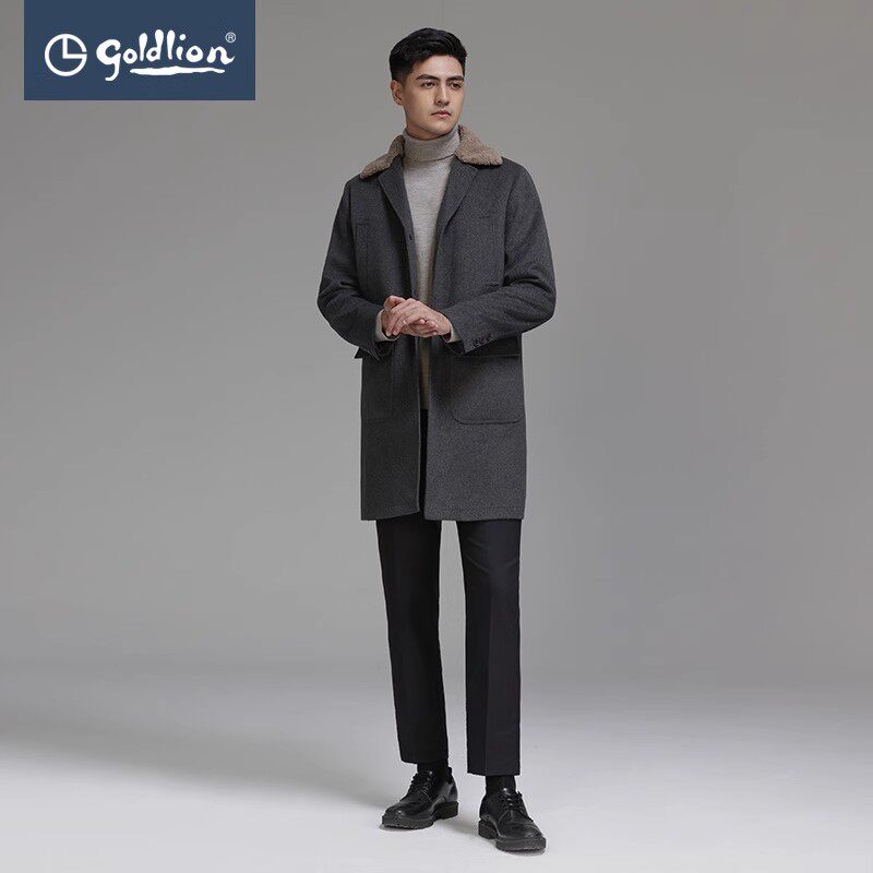 金利来秋冬新款季毛呢大衣可拆卸毛领翻领外套含羊毛翻领保暖外套