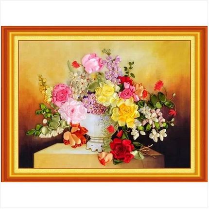 特价包邮新款立体丝带绣 客厅餐厅卧室彩印挂画 暗香花卉非十字绣