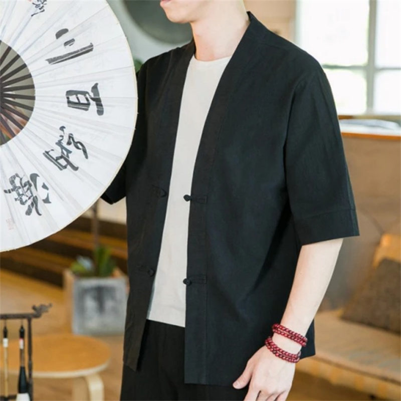 中式国潮开衫夏季汉元素复古中国风道袍棉麻宽松防晒短袖衬衣外套