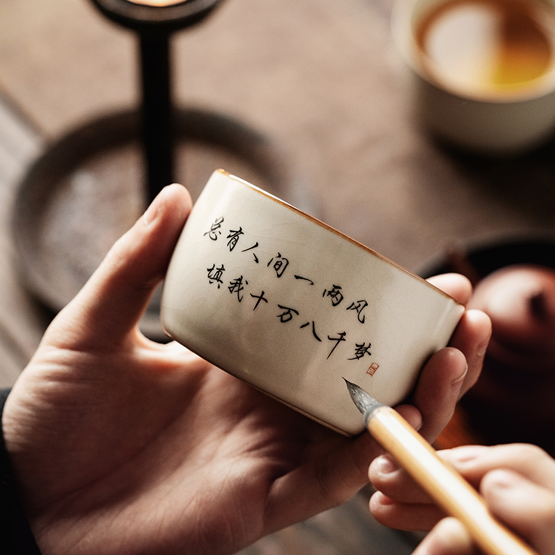 汝窑主人杯家用定制可养茶杯陶瓷个人专用刻字私人订制品茗杯杯子