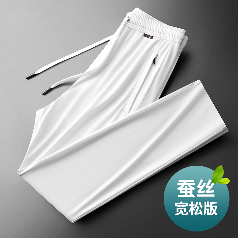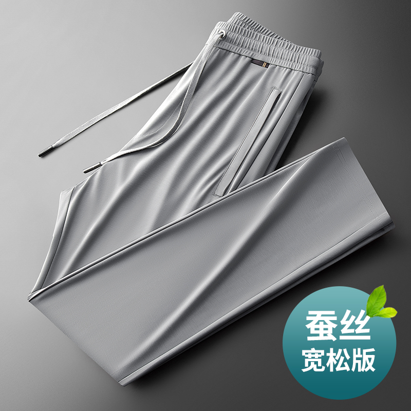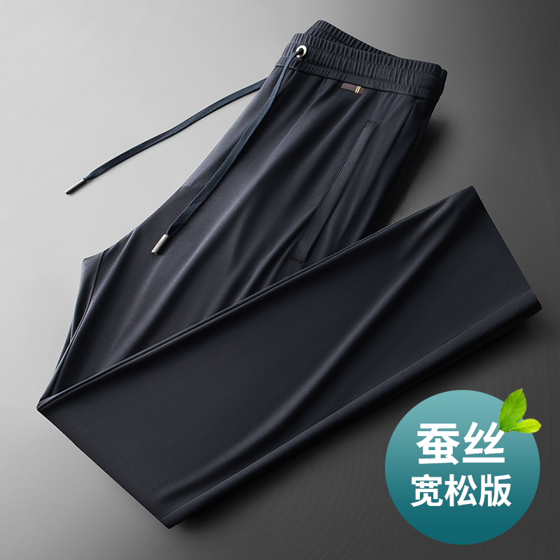 凉爽桑蚕丝 夏季轻薄款男士运动裤宽松直筒休闲裤中年冰丝男裤子