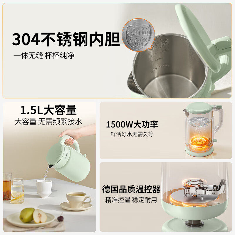 九阳电热水壶家用1.5L容量开水壶304不锈钢电水壶饮茶饮水机