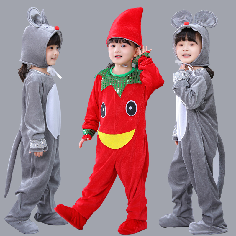 新款儿童老鼠演出服幼儿园男女纱裙舞台卡通服辣椒小动物表演服装