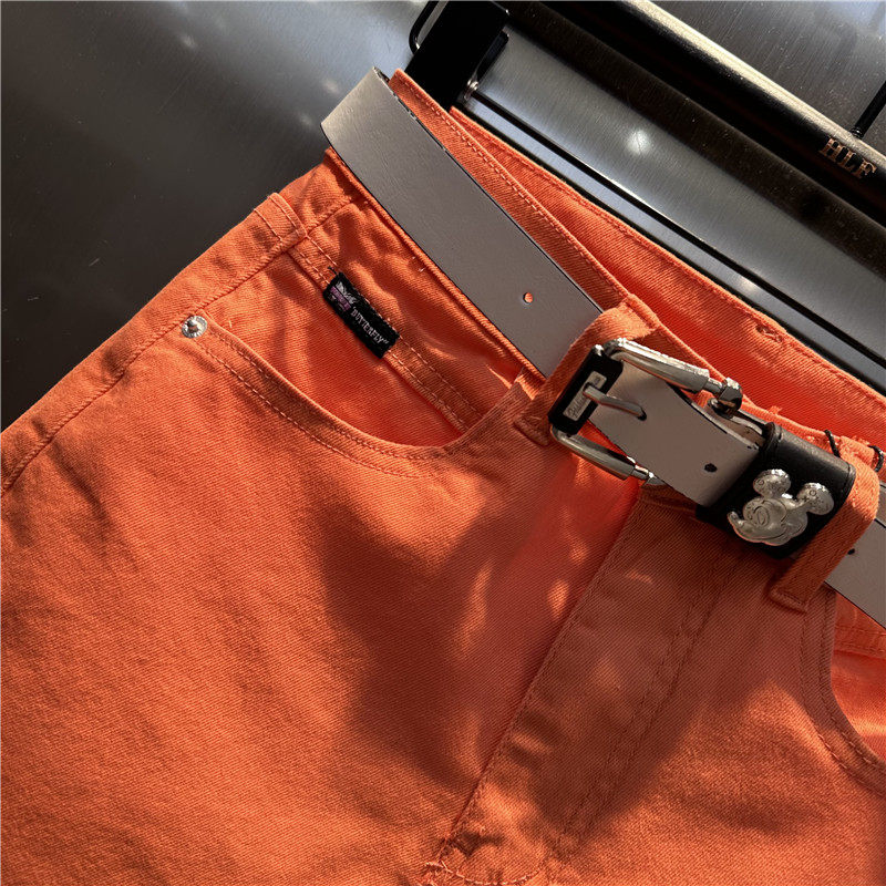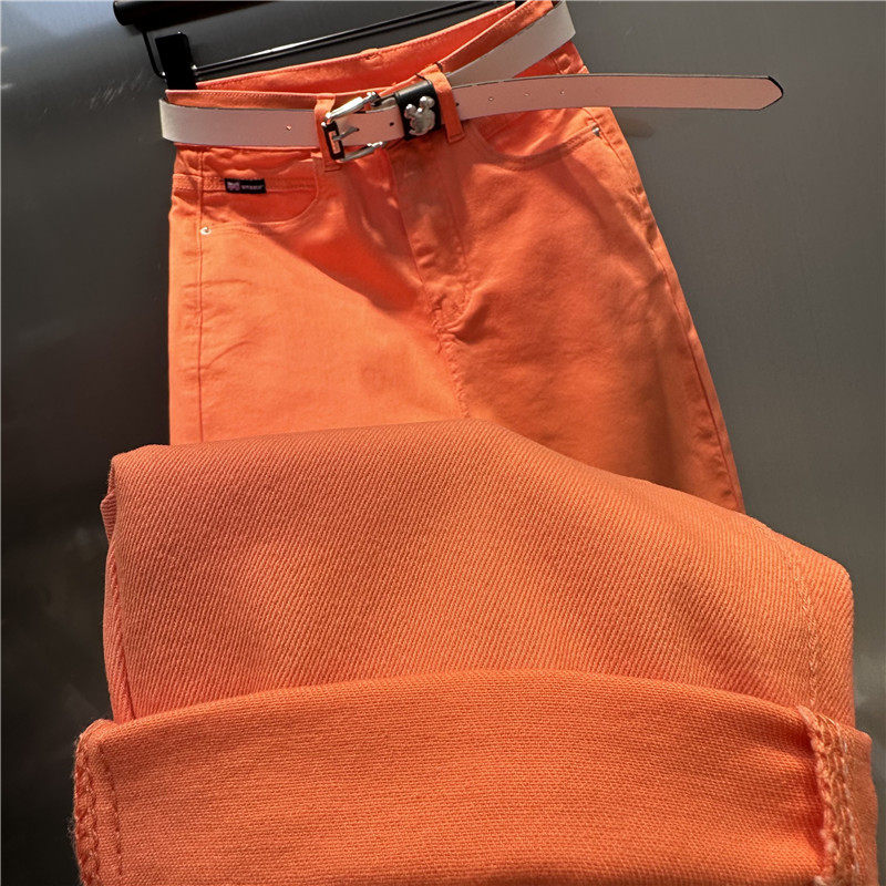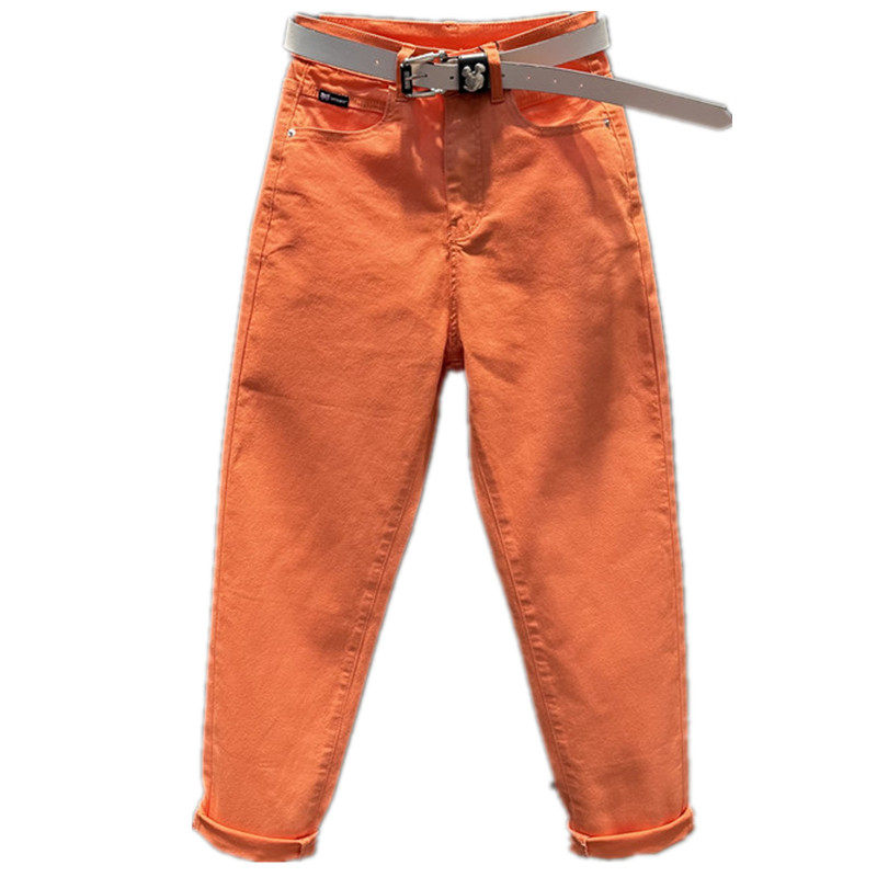 桔红色牛仔哈伦裤宽松百搭