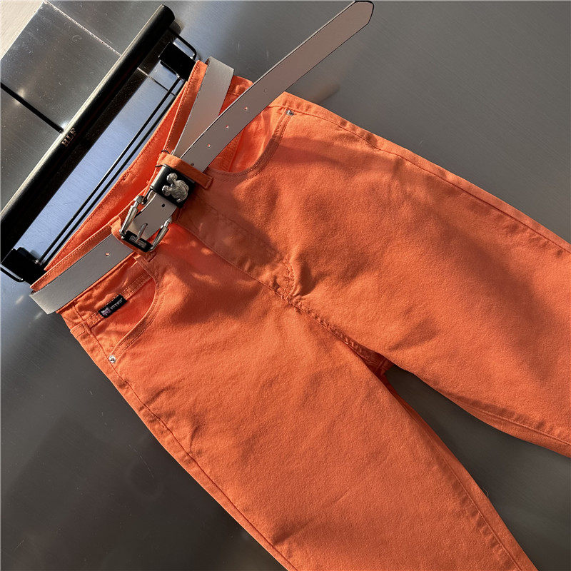 2024年春夏新款桔红色牛仔哈伦裤宽松百搭小脚九分萝卜裤大码垮裤