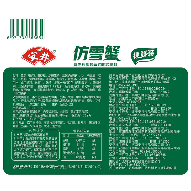安井锁鲜装仿雪蟹120g*1袋蟹味棒凉拌菜蟹柳寿司食材火锅麻辣烫