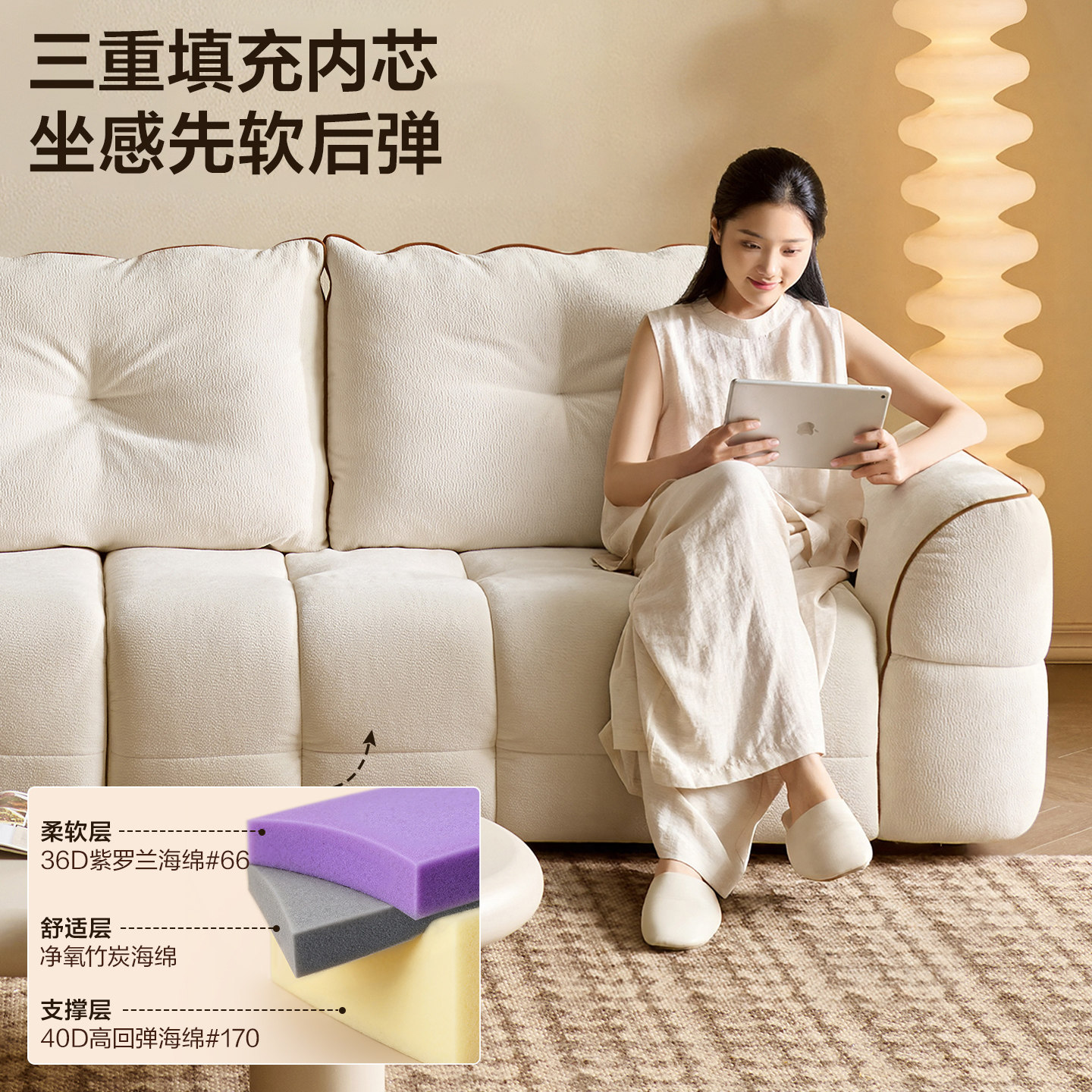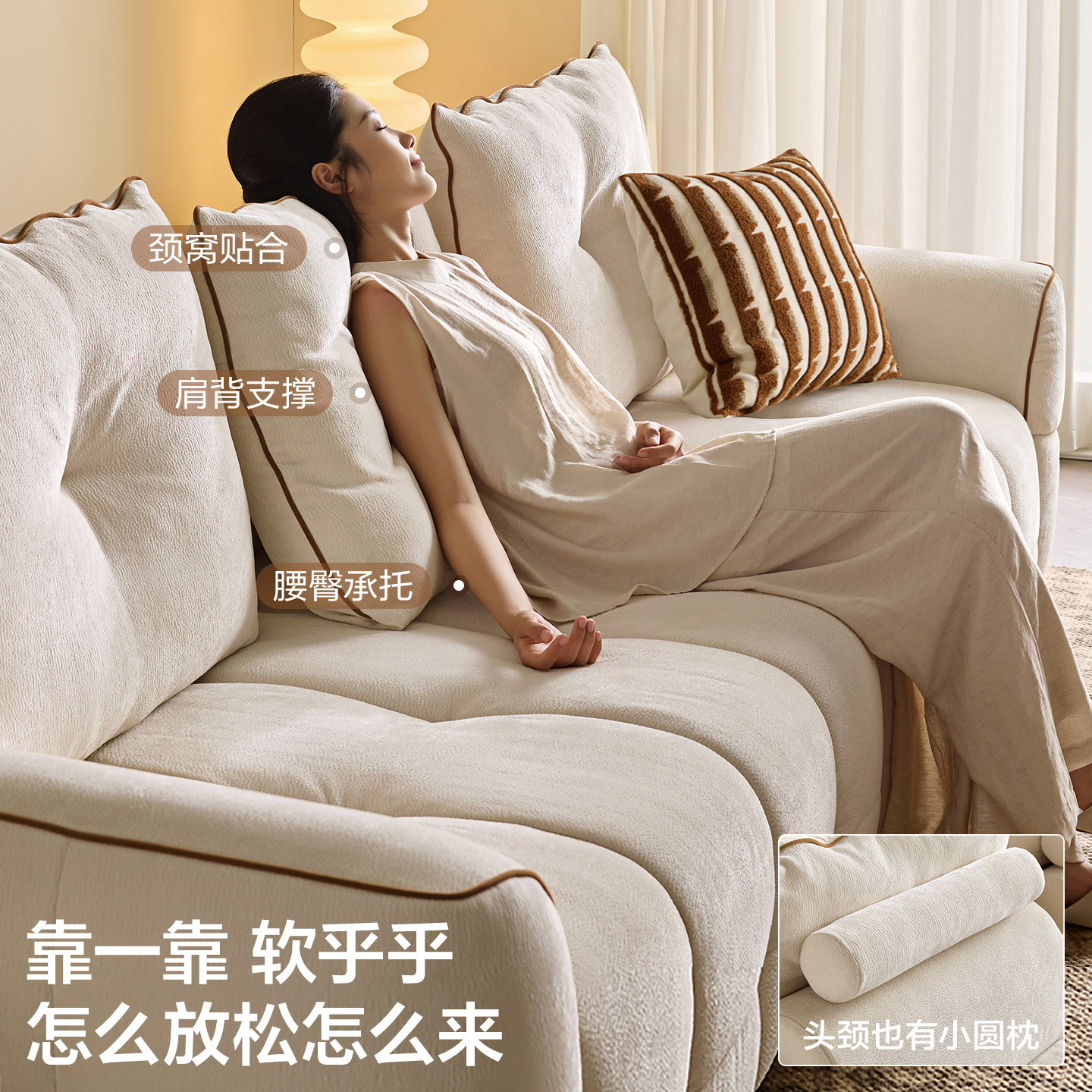 全友家居2025新款奶油风雪尼尔布艺沙发客厅小户型多功能直排沙发
