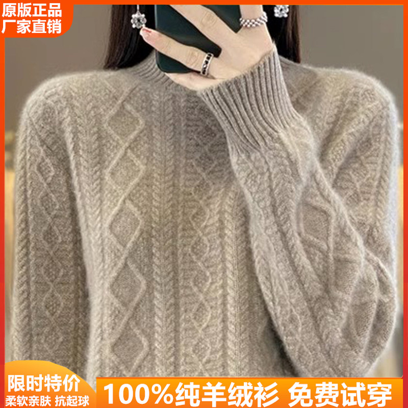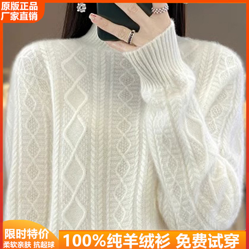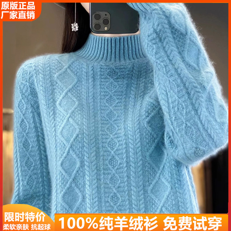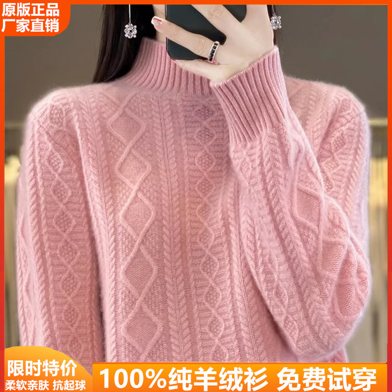 鄂尔多斯市羊毛衫女秋冬季宽松毛衣新款半高领加厚羊毛针织打底衫