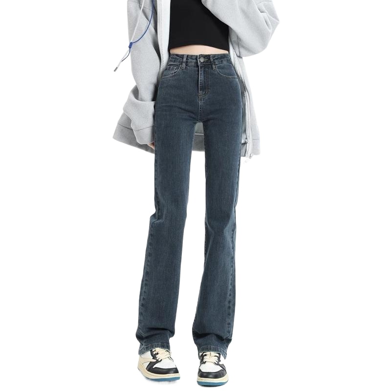 高腰修身牛仔裤女2025春秋新款弹力显瘦窄版直筒裤烟管长裤冬加绒